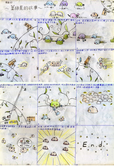 接續光合作用的類比故事繪本教學,分享學生後來的作品,由於我一時手軟,沒有要求學生一定要類比進行創作,也沒有強制用類比創作的學生要進行類比對應,因此學生的作品五花八門,不過由於之前有給學生我畫的繪本,所以有很多學生都用繪本當作藍圖創作,但是畫得超級棒的!雖然跟原本的目的有點不同,不過學生還是有出人意料的好表現,要大力拍拍手鼓勵一下。